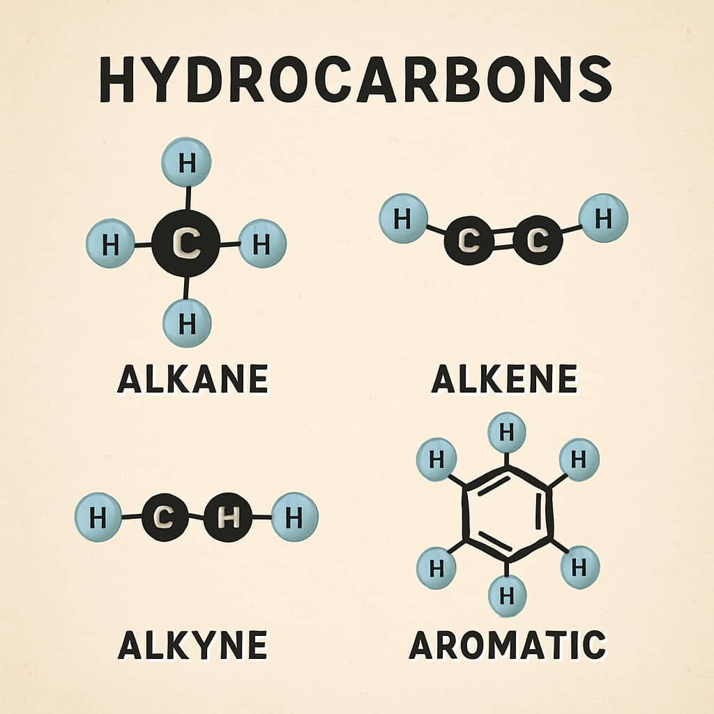 ۱- هیدروکربن چیست؟ ترکیباتی از کربن و هیدروژن که به صورت مایع یا گاز وجود دارند و کاربردهای صنعتی گستردهای دارند.