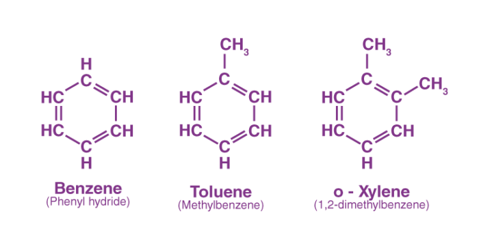هیدروکربنهای آروماتیک (مانند بنزن، تولوئن و زایلن):