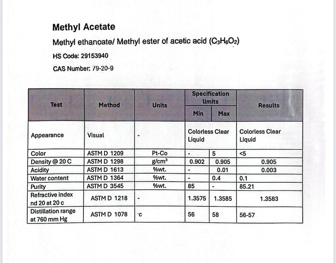 فروش متیل استات توسط بازرگانی آبان شیمی و به صورت عمده و جزئی انجام می شود. اگر به دنبال خرید آن با بهترین قیمت و کیفیت هستید، با کارشناسان بخش فروش این ماده آبان شیمی در ارتباط باشید.