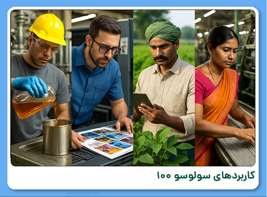 از سولوسو ۱۰۰ در صنایع گوناگونی استفاده می شود که برخی از مهم ترین آنها عبارتند از: